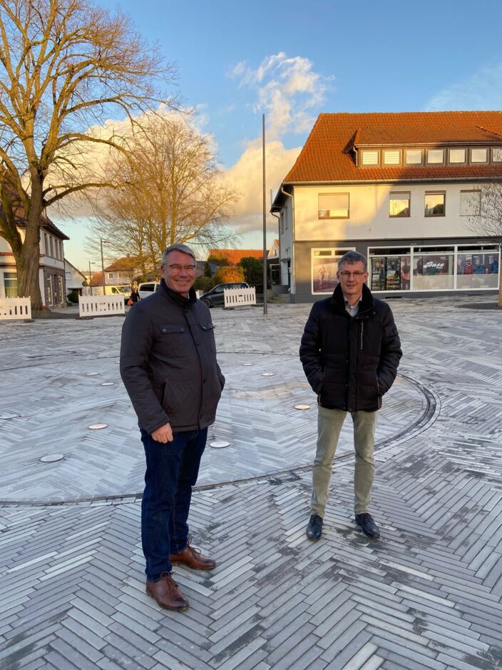 Dass Förderungen immens wichtig sind, davon konnte sich Dahm auch gleich ein Bild machen. Dumcke führte den Landespolitiker zum neugestaltete Blücherplatz, der so gut wie fertig ist und im Mai eröffnet wird.