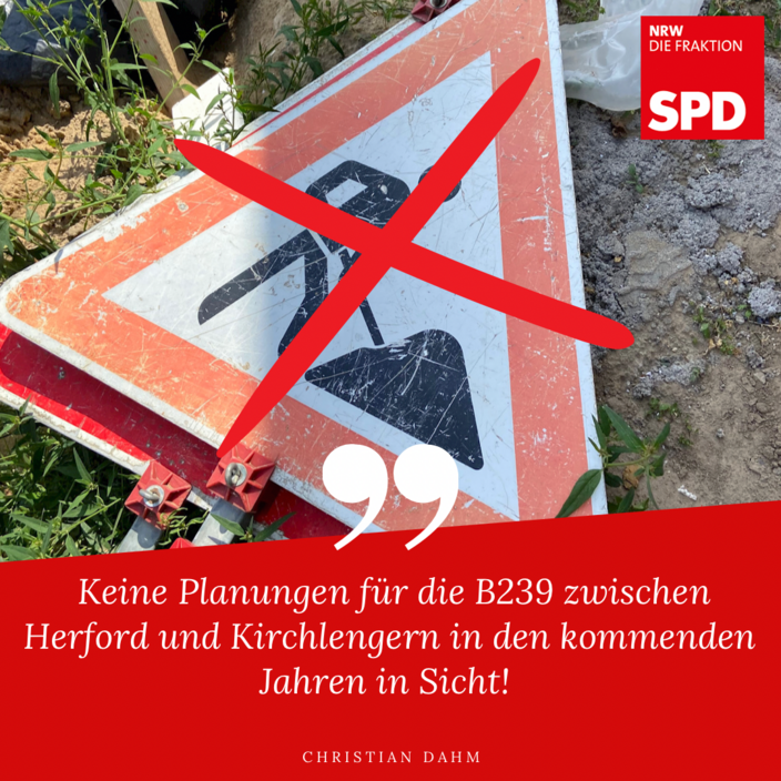 „Wann bzw. mit welchen Schritten wird das Land NRW die Planungen für die Neutrassierung der B 239 zwischen Herford und Kirchlengern wieder aufnehmen?“ Diese Frage hatte der SPD-Landtagsabgeordnete Christian Dahm vor vier Wochen in einer Kleinen Anfrage an die NRW-Landesregierung gestellt. Die Antwort fällt kurz und knapp aus: „Derzeit werden keine neuen Planungen aufgenommen.“ Aus Sicht des heimischen Abgeordneten ernüchternd: „Das ist enttäuschend. Es würde bedeuten, dass wir in den nächsten Jahren keinen Schritt weiter kommen und dass es für die Trasse keine zeitliche Perspektive gibt.“