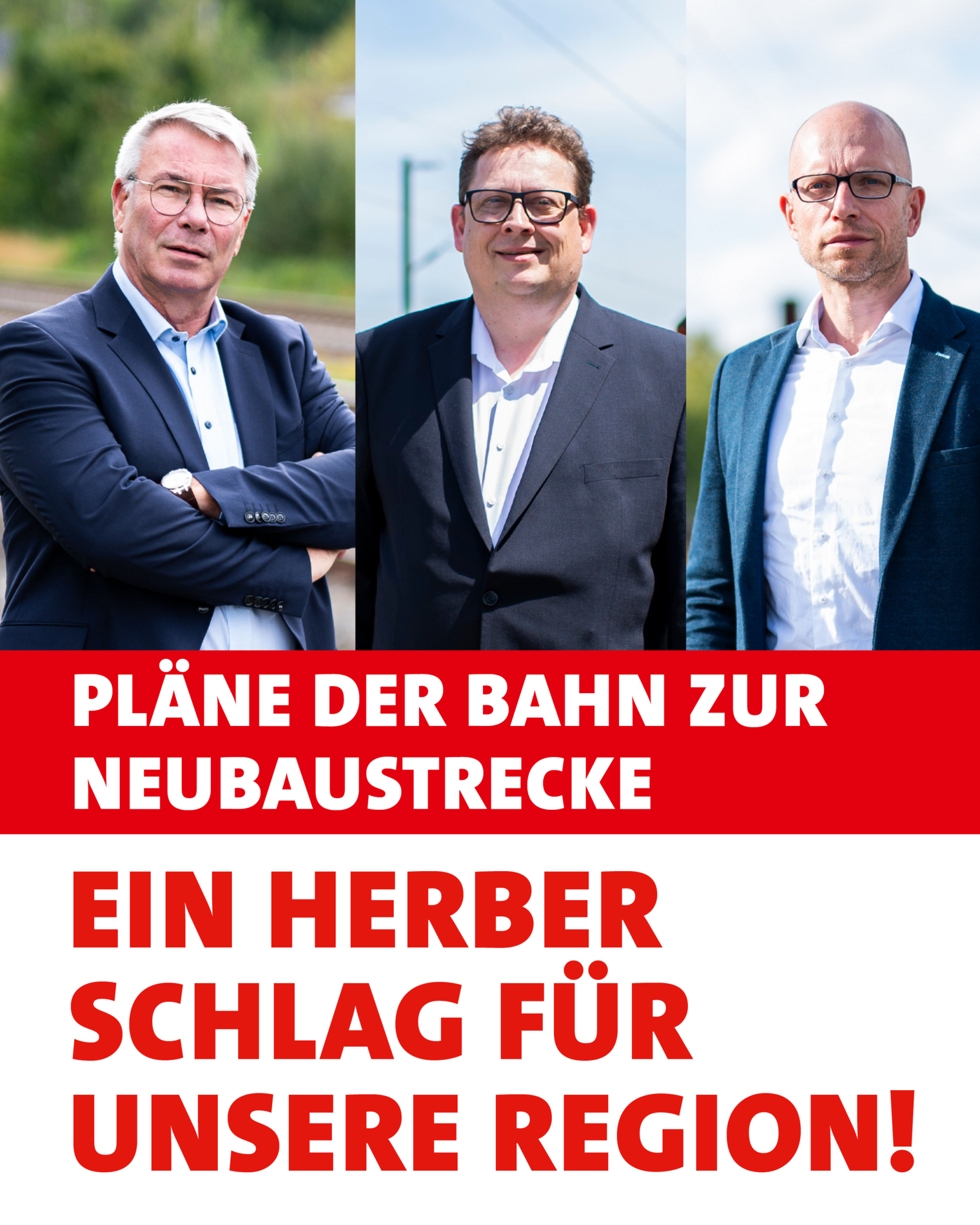 Ferner ist dadurch zu befürchten, dass auch die Anliegerinnen und Anlieger an der Bestandsstrecke nicht mehr von Verbesserungen, wie zum Beispiel einem optimierten Lärmschutz, profitieren werden.