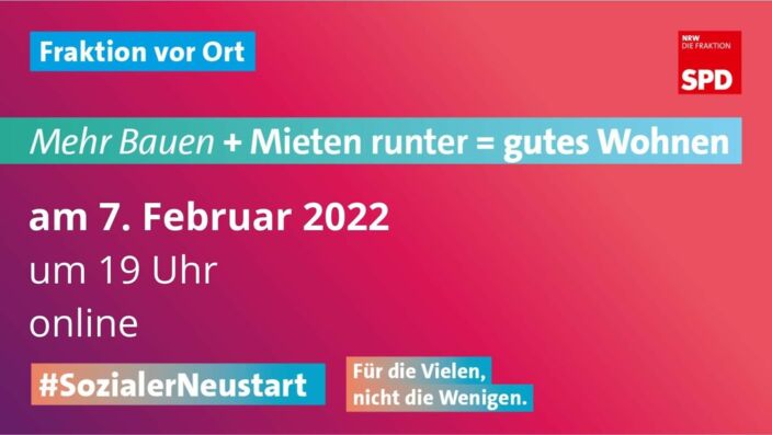 Ebenfalls auf dem Podium zur Zukunft der Wohnungspolitik in NRW werden Marion Weike als Aufsichtsratsmitglied der KreisWohnstättenGenossenschaft Halle (Westf.) eG, sowie Kai Schwartze, Vorstandsvorsitzender der Bielefelder Baugenossenschaft „Freie Scholle“ diskutieren. Die Veranstaltung findet hybrid statt. Das Podium diskutiert in der „Alten Remise“ in Halle, während interessierte Bürgerinnen und Bürger sich von Zuhause aus per Stream zuschalten und mitdiskutieren können. Interessierte können sich unter www.machen-wir.de/wohnengt anmelden. „Gerne auch aus dem Kreis Herford, weil das Thema alle angeht“, betont Christian Dahm. Mit dem Format „Fraktion vor Ort“ diskutiert die Landtagsfraktion aktuelle, politische Themen des Landes in einem lokalem Bezug.